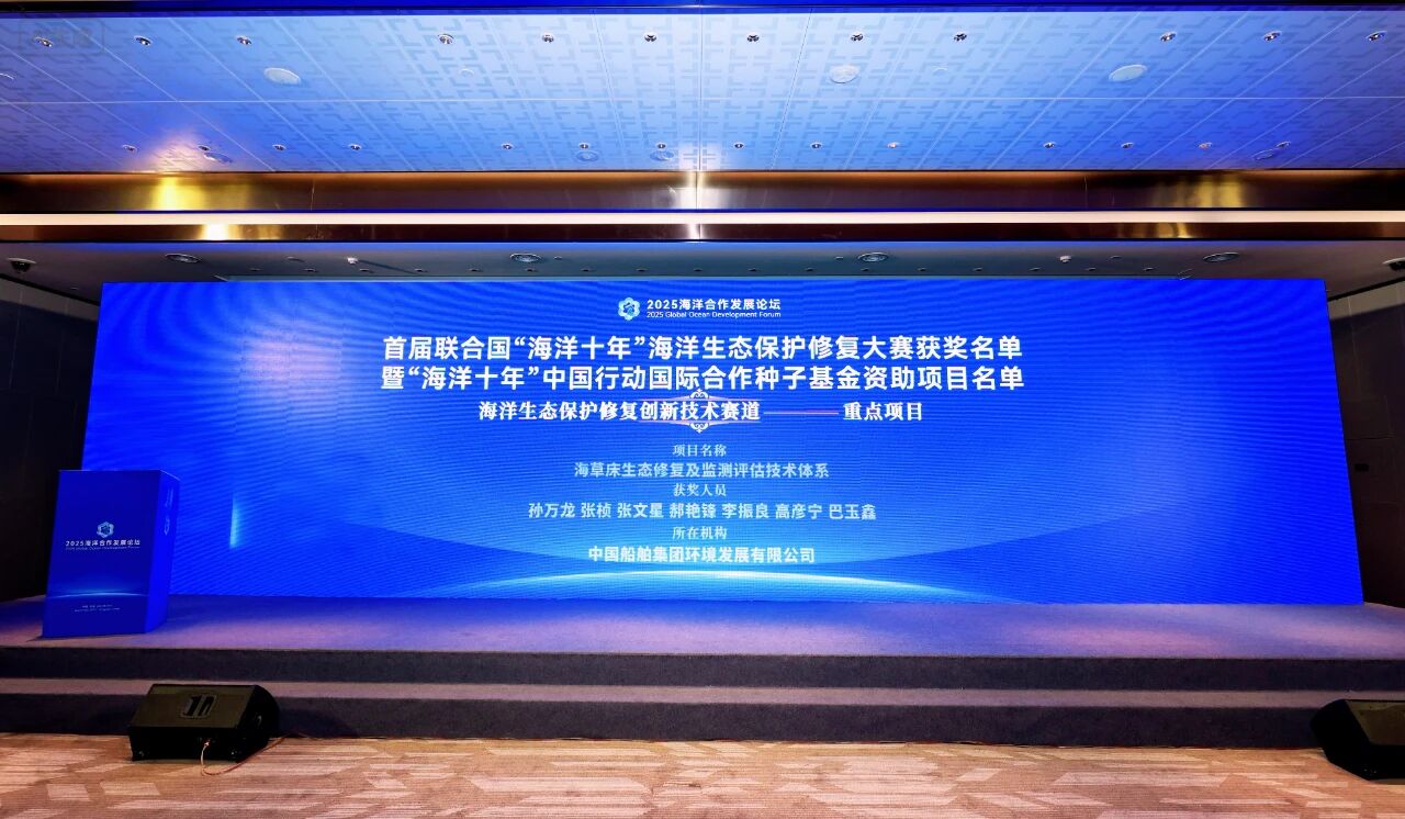 近日,中国jxf吉祥坊集团环境发展有限公司(以下简称“中船环境”)自主研发的《海草床生态修复及监测评估技术体系》项目,在首届联合国“海洋十年”海洋生态保护修复大赛中脱颖而出,荣获“海洋十年”中国行动国际合作种子基金资助重点项目。中船环境也是唯一独立自主完成海洋生态保护修复创新技术项目的企业代表。