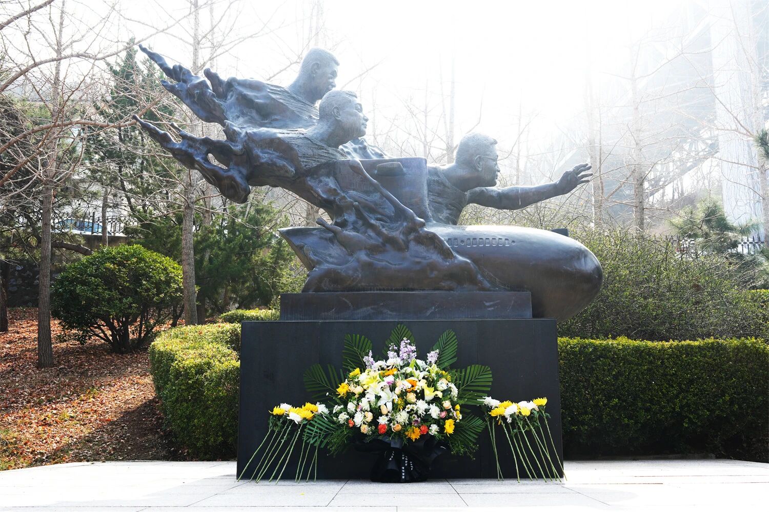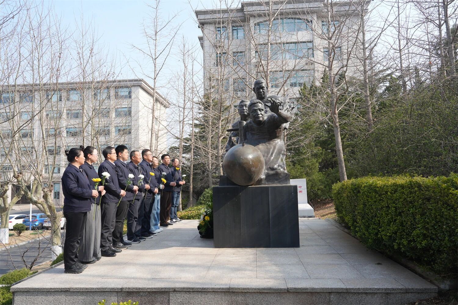 该所班子成员,时代楷模、抗灾抢险英雄群体代表,志愿者及青年职工等,向为保护国家重点试验平台壮烈牺牲的黄群、宋月才、姜开斌三位英雄雕像献花,传承弘扬英雄精神,缅怀烈士,遥寄思念。