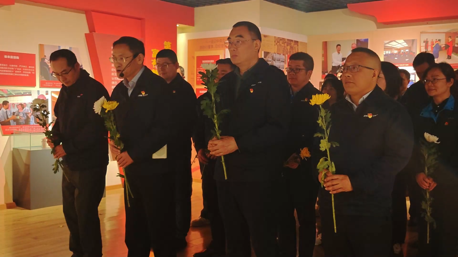 面向张进同志遗像,全体人员整齐列队,鞠躬默哀、敬献鲜花,以朴素庄重的方式表达深切哀思与崇高敬意。