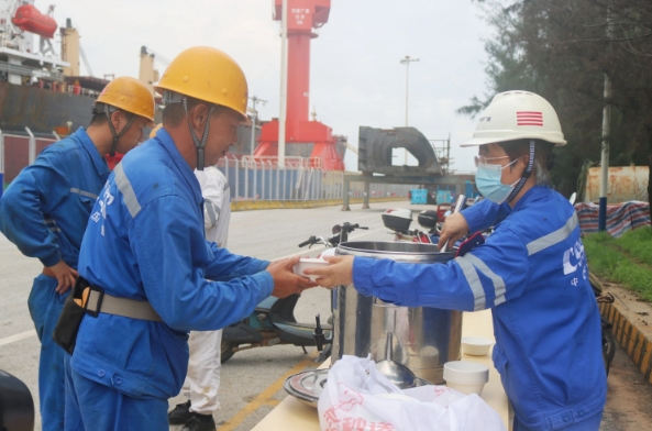 中船广西开展防暑降温宣传活动,柔性调整生产部门上班时间;改善防暑设施设备,精心改造60个班组旧式集装箱,临时租赁15台风冷机投入到露天作业现场,为员工撑起高温下的“保护伞”;每天高温时段为职工送上消暑的罗汉果茶、菊花茶、绿豆汤等,推动降温关怀融入日常。