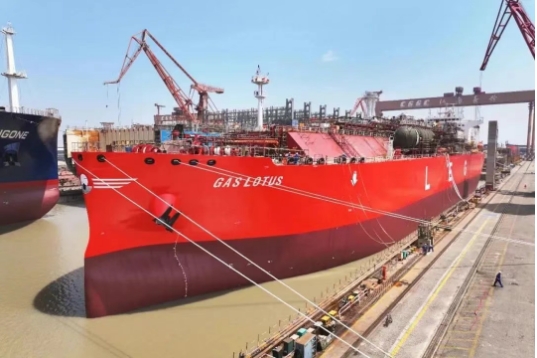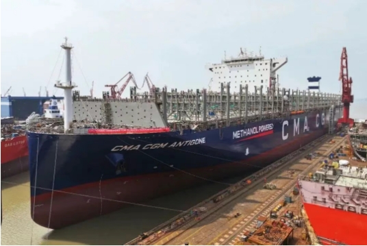 起浮的则包括17.5万立方米MARK Ⅲ FLEX薄膜型液化天然气(LNG)运输船和16000TEU甲醇双燃料动力大型集装箱船系列船2号船。