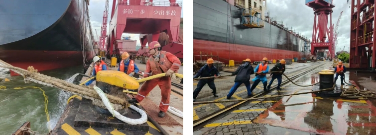 第一时间启动防台应急预案,成立专项应急指挥小组,周密部署防台责任分工、隐患排查、物资储备、应急值守等工作。组织各生产部门对厂区重点区域开展安全隐患拉网式排查,加固码头系泊设备、龙门吊等大型机械,转移露天物资;对船坞、堆场、临时工棚等区域进行防风防水处理,暂停高空作业;检查配电设施防水情况,疏通厂区排水管网,配备应急抽水泵,确保安全度过台风期。严格执行24小时领导带班和值班制度,实施应急抢险队伍全员待命,并加强与当地应急管理等部门的沟通联动,实时跟踪台风路径,动态调整台风应对方案。台风过境后,立即开展了灾后检查,评估设备设施受损状况,在确保安全的前提下有序恢复生产。