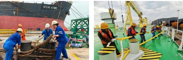 台风来临前,闻“风”而动。紧急为单船加缆,将水上设备移入港池避风,拆除全部应急梯,对缆桩开展地毯式排查,预先部署防台横缆,筑牢前置防线。针对受风面积大的大型集装箱船等重点产品,升级加固措施,加装高强度缆绳等,为巨轮系紧“安全锁”。