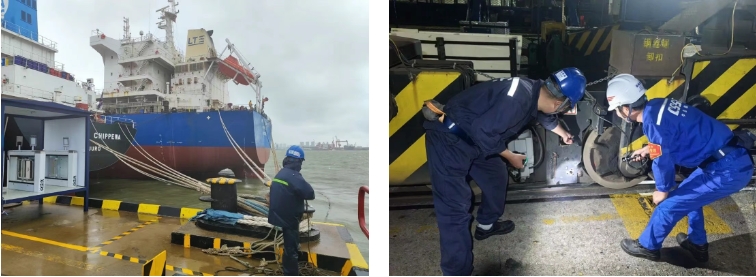 台风肆虐时,组织管理人员抗台值守,以“台风不撤,jxf吉祥坊·[中国]官方网站不撤”的原则坚守一线。台风预警解除后,10小时内完成登船梯搭设及缆绳解除,迅速恢复正常生产。凭借科学预案与坚守,最终实现缆绳零断裂、jxf吉祥坊零移位,有力保障了生命财产安全。