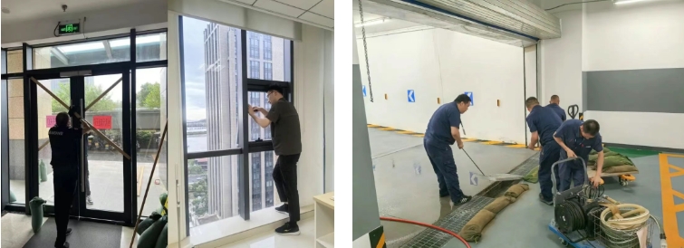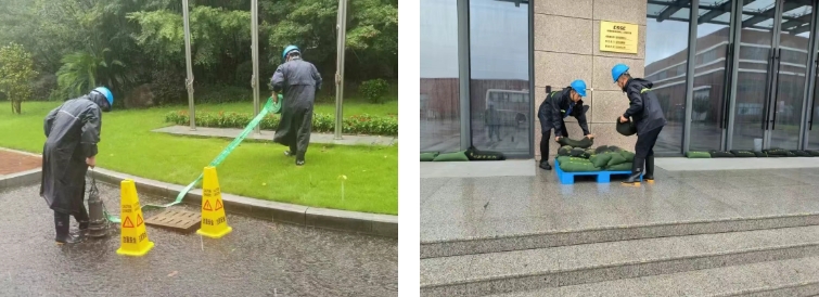 联勤联动,迅速构建“领导班子+部门负责人+一线员工”的高效运转防汛指挥体系,党员带头参与各园区现场24小时值守,在风雨中筑起守护资产安全与科研保障的坚实屏障;集配物资,为应对海啸黄色警报,在前两个月防汛防台应急准备基础上,迅速完成防汛物资清理,1小时内增设调配1000个沙袋、15台抽水泵、30套应急照明等应急物资,并依据“一点一策”方案精准部署至各个重点防汛点位;巩固排查,及时安装完成各类防水密封效果更好的铝合金挡水板,在地势低洼处加设沙袋,对户外建筑、高处设备和树木等进行检查和加固,确保万无一失。
