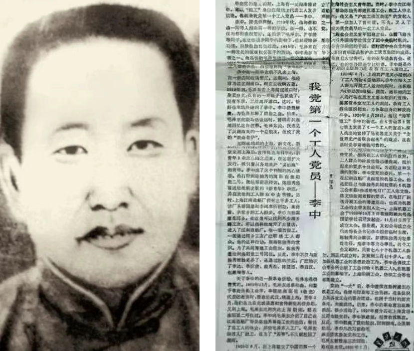 1920年8月,上海共产党早期组织成立,积极建立工人组织。1921年,李中由社会主义青年团团员转为中国共产党党员,成为中国共产党第一位工人党员。