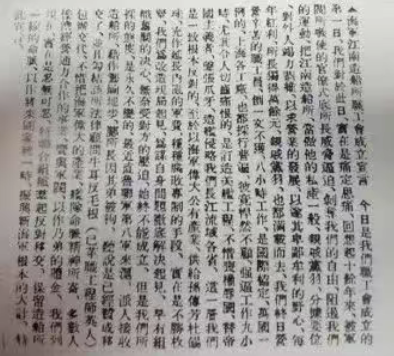 1927年3月21日,上海工人举行第三次武装起义,起义胜利后的第二天,在杨培生组织下,江南造船所职工会成立,并发布《职工会宣言》,揭露军阀与官僚的反动面目,唤醒工人奋起斗争。