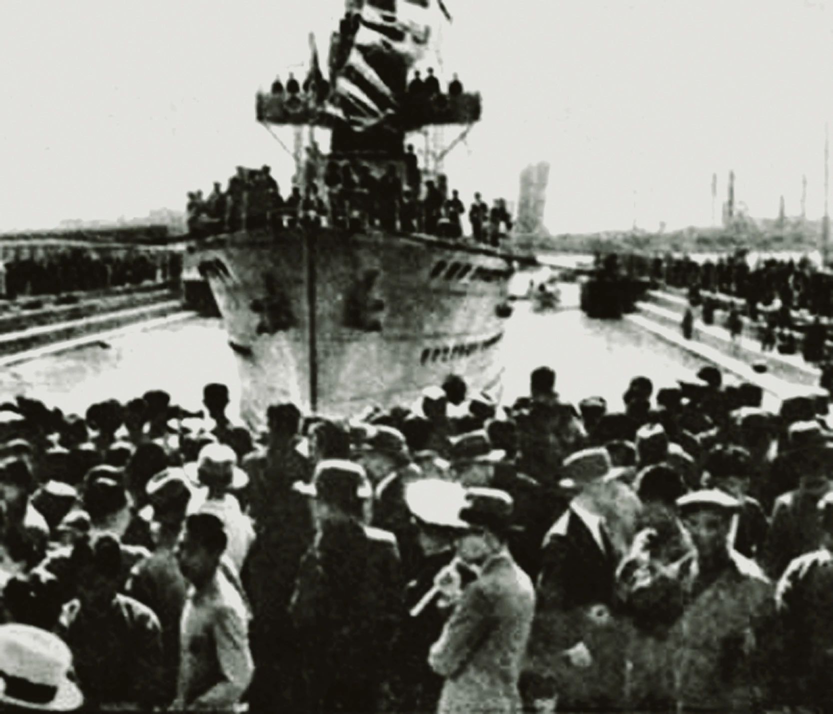 1928年8月16日午后,从上海老城厢西门通向江南造船的道路上,四处悬旗结彩。沿路张贴着“‘咸宁’下水是国民政府海军的新建设”“巩固海防、恢复海权”等标语。在江南造船厂区内临江的一处船台上,咸宁舰已经完工,静静地等待着下水的庄严一刻。这是江南造船为南京国民政府定制的第一艘军舰。
