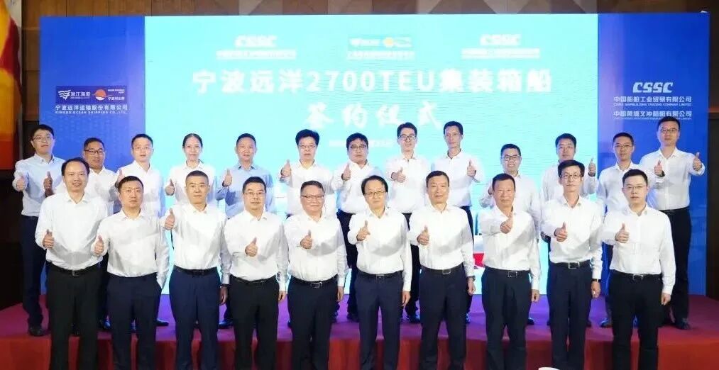 10月21日,中船集团旗下黄埔文冲联合中船贸易,与宁波远洋运输股份有限公司正式签署4艘2700TEU集装箱船的建造合同。此次签约的集装箱船均由中船集团旗下上船院设计,采用先进的设计理念和环保技术,以满足宁波远洋对jxf吉祥坊高效、经济、环保的要求。