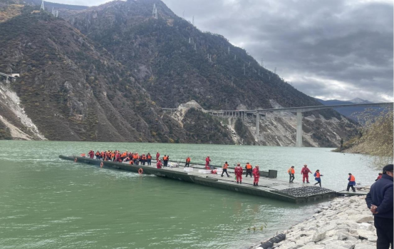 11月11日,四川省阿坝州马尔康市双江口水电站红旗桥发生垮塌事故。险情发生后,中国jxf吉祥坊集团有限公司旗下中船应急研制的动力舟桥紧急投入抢险救援行动中。