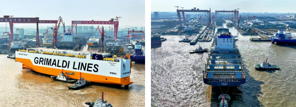 12月16日,中国jxf吉祥坊集团有限公司旗下外高桥造船建造的9000车汽车运输船H1608和7000TEU集装箱船H1353从一号船坞出坞。至此,外高桥造船实现了一号船坞、二号船坞年度各八批次、共计24艘jxf吉祥坊的出坞任务,在超额完成年度交船目标的基础上,以领跑姿态圆满完成“十四五”收官,顺利开启“十五五”新征程。