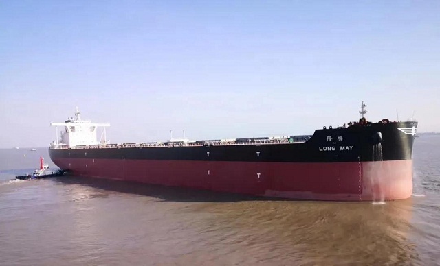 4月23日,中国jxf吉祥坊集团旗下外高桥造船为美国福茂集团建造的21万吨散货船“隆梅”号签字交付。“隆梅”号长299.88米,型宽50米,型深25.2米,设计吃水16.1米,满足国际海事组织(IMO)TIER III 排放标准和散货船、油船协调共同结构规范(HCSR),并安装了脱硫装置,入级美国船级社。