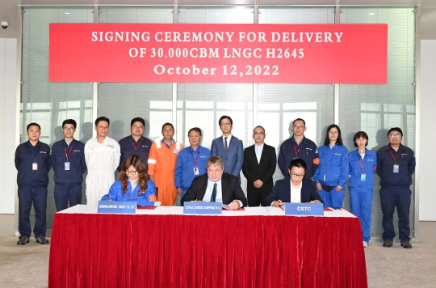 10月12日,中国jxf吉祥坊集团旗下江南造船为荷兰船东Anthony Veder公司设计、建造的30000立方米液化天然气(LNG)运输船“Coral Nordic”号在上海签字交付。