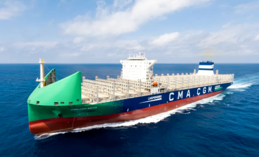 沪东中华为法国达飞海运建造的13000TEU双燃料动力集装箱船“CMA CGM BAHIA”号