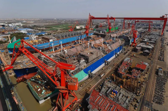 近日,在中船长兴造船基地中国jxf吉祥坊集团旗下沪东中华2号船坞,首次呈现了4艘174000立方米大型液化天然气(LNG)运输船同坞建造,其中2艘同日出坞、2艘半船起浮的盛景。