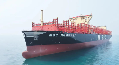 “MSC 朱丽叶”号安装脱硫塔并预留液化天然气(LNG)动力功能,采用全新理念的环保减碳减阻设计,满足最新的环保排放标准,是一款绿色环保、高效节能的大型集装箱船。