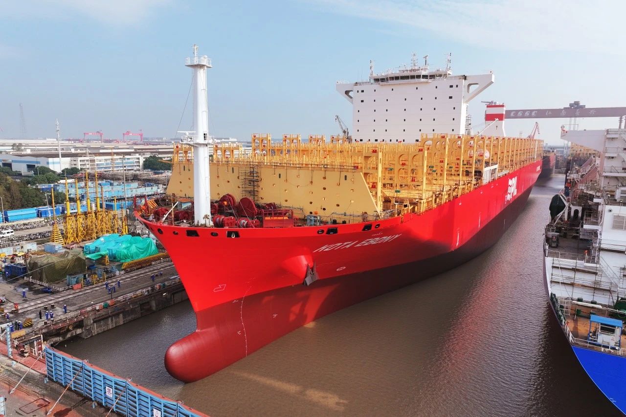该船为江南研究院自主研发设计的“鲲”系列大型集装箱船,采用LNG双燃料动力,是新型高效、绿色、节能环保的船型。