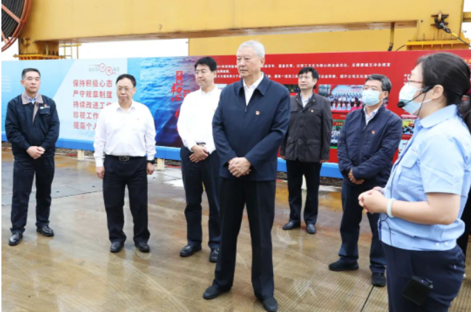 调研期间,中央主题教育第42指导组组长王寿君、副组长房德权,成员程建宏、项紫君、仇国欢一行深入黄埔文冲科研生产现场,登上在建重点jxf吉祥坊,详细了解重点项目产品性能、技术优势,听取了关于设计研发、创新改进、生产建造过程的介绍。指导组一行还走进黄埔文冲厂史馆,了解黄埔文冲170多年的发展历程。