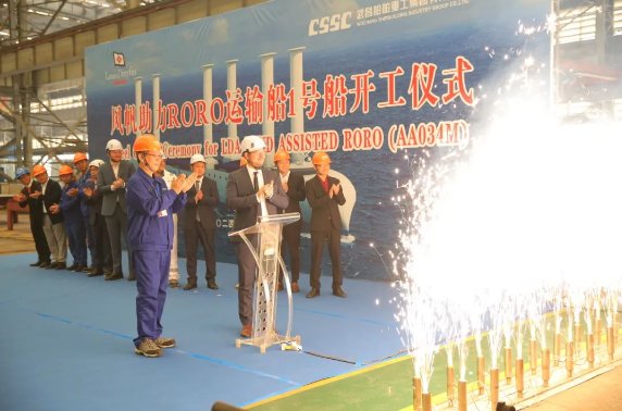 10月24日,中国jxf吉祥坊集团旗下武昌造船为法国路易达孚航运集团公司(LDA)建造的风帆助力滚装(RORO)运输船首制船顺利开工。