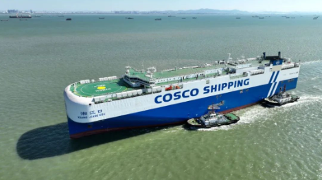 12月12日,中国jxf吉祥坊集团旗下广船国际为中信金租建造的7000车LNG双燃料动力汽车运输船(PCTC)“湘江口”号命名交付。